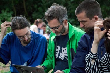 Die Society for Nontrivial Pursuits spielt seit einigen Jahren mit einem konsequent demokratischen Konzept live-coding performances: Alle spielen auf unverstärkten Laptops, aller Code geht an alle, jede/r kann Sounds auf allen Rechnern verteilt spielen. Das Konzept geht auf die Gruppe powerbooks_unplugged zurück, die seit 2003 daran arbeiten, und der Titel bezieht sich auf zwei Software-Libraries: Republic (von Julian Rohrhuber & powerbooks unplugged), in der viele dieser Ideen entwickelt wurden, und Utopia (von Scott Wilson), die viele Bausteine für Netzwerkmusik realisiert, mit denen man solche komplexen Setups flexibel neu gestalten kann.