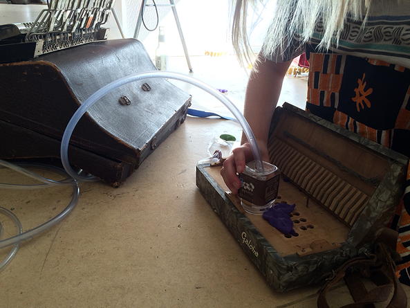 Respire Tune is a performative installation consisting of dismantled elements of accordions, transformed into a new form by appropriating an altered mechanic system. In this installation, a collection of unrepaired accordions stemming from different times and places come together to form a new instrumental body. The bellows are replaced, and mechanically pressurized air vibrates the reeds, causing them to produce sound. During the instrument’s 150-year history, different grades and qualities of treated steel were used in order to construct the reeds, causing slight variations of pitch and timbre. Due to the effects of time and the high cost of repair, many cheap to mid-priced accordions fall out of tune and out of use. When played together, the different reeds create a pallet of frequencies standing in unique relation to one another, providing us with a pool of tones from where we can mine out undetermined sets of chords: a process that relates to the feeling of finding them, rather than building or composing them. The accordion tradition in Germany enjoys an excellent international reputation due to major manufacturers such as Weltmeister and Honer. Between 1860 and World War I, Germany produced approximately 255,000 instruments a year. In this period, these accounted for the main worldwide distribution of accordions, with instruments exported to the USA, South America, Canada, and the rest of Europe. Back in Germany, a rich accordion tradition evolved and is still being maintained.
